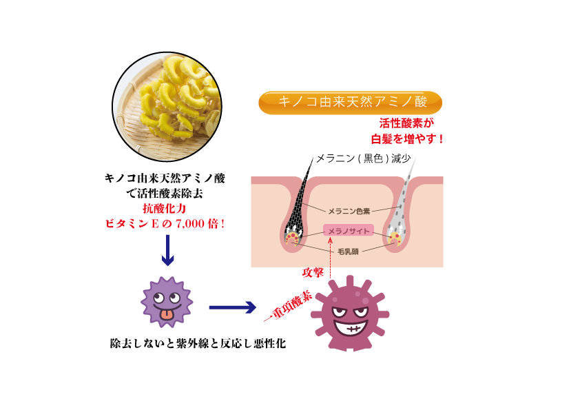 抗酸化力ビタミンEの7,000倍! キノコ由来天然アミノ酸で活性酸素除去!