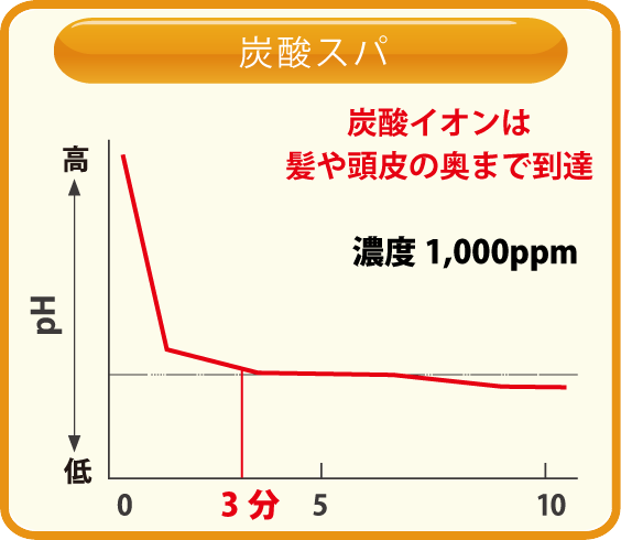 炭酸スパを約3分行うことで、頭皮と髪のアルカリを徹底的に除去!
